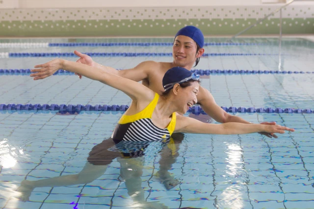 泳ぎ方のレッスンだけでなく、音楽に合わせて身体を動かす「アクアビクス」、足腰の負荷なく運動できる「水中ウォーキング」なども実施しています。