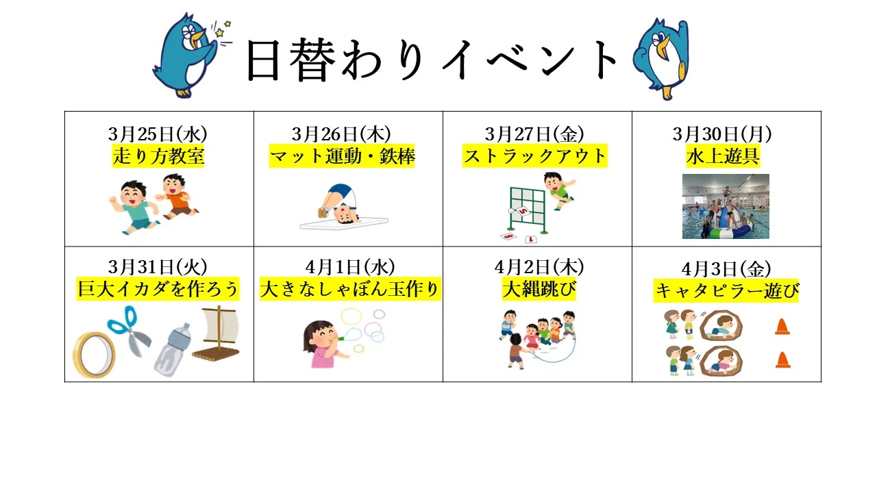 お子様が飽きずに楽しめる日替わりのイベントもありますよ♬