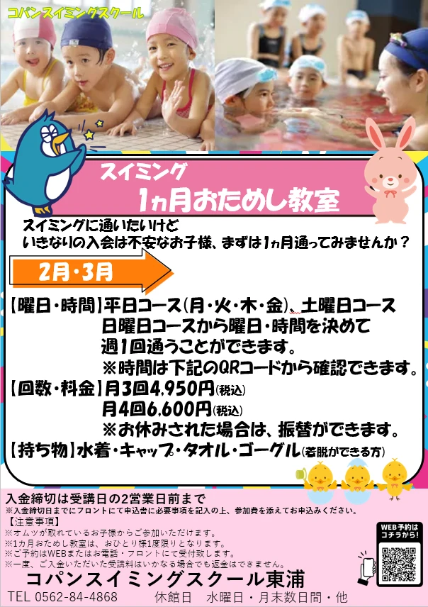 スイミングに通いたいけど、いきなりの入会は不安なお子様