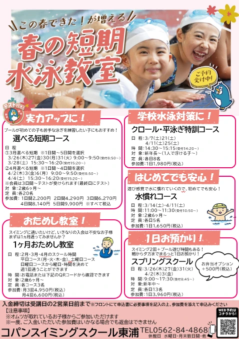 春休みの数日間で、集中して泳ぎのコツをつかもう!