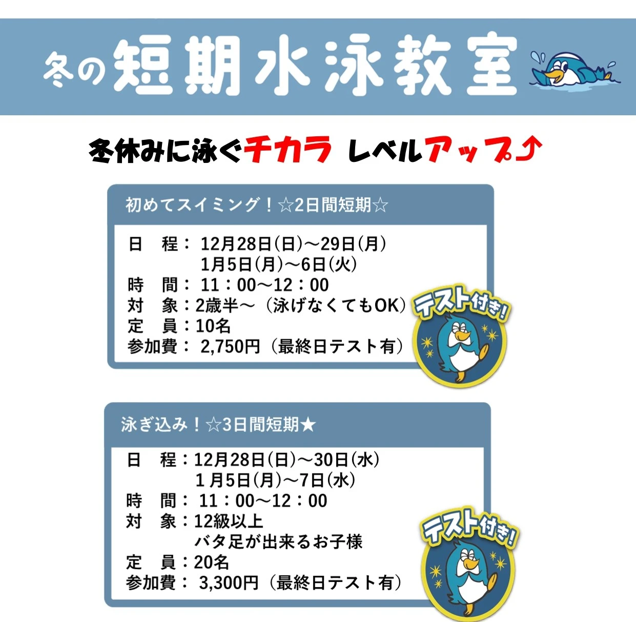冬休みにコパンでスイミング!