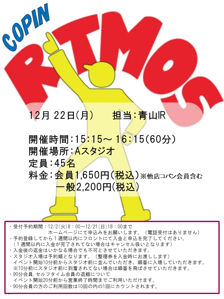 ※10分前にスタジオ前に到着されてない場合は順番を飛ばさせていただきます。
