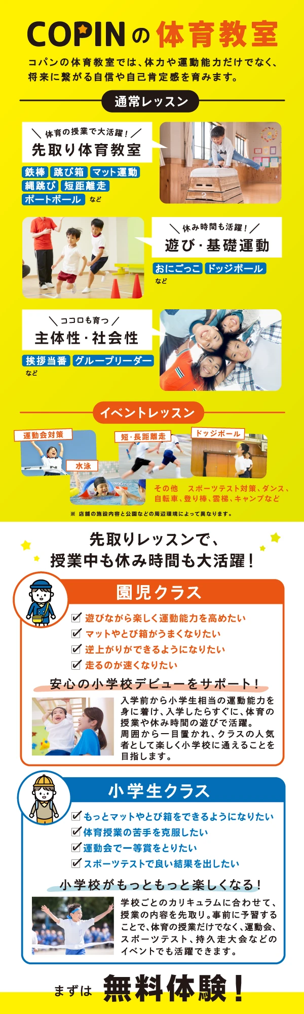 大人気の習い事『スイミング』と『体育教室』を1日で体験できちゃう!