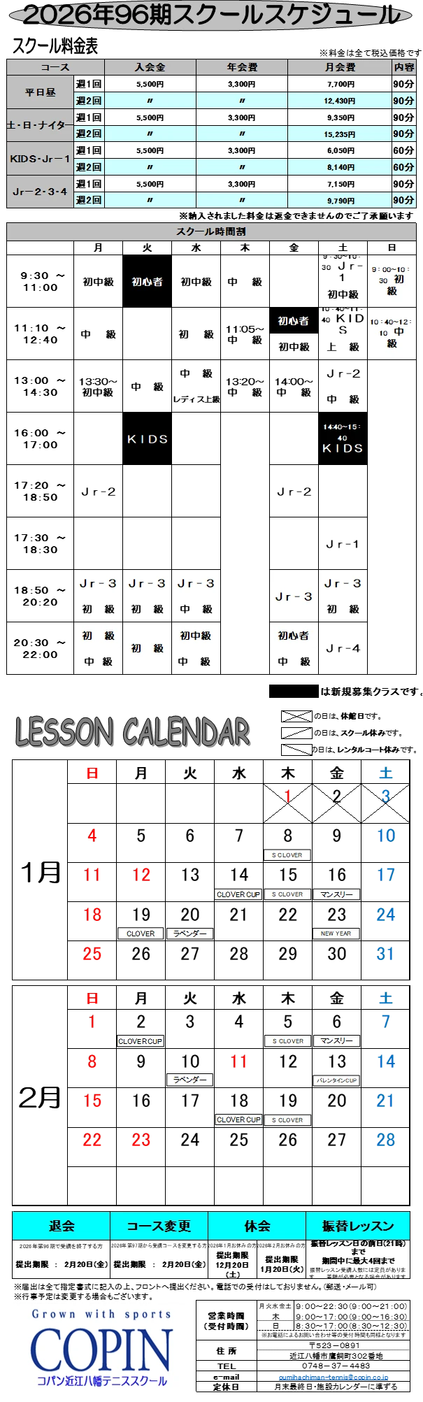 最近の記事 1/30(金)まで!冬の入会キャンペーン実施中! 2025.12.16 キャンペーン more 無料休会制度の延長について 2025.11.19 お知らせ more 【大人テニススクール】どんなレッスンか体験してみよう!!(テニス経験者の方対象) 2025.9.2 イベント more スポーツクラブ3部門で高評価を達成! 2024.6.24 キャンペーン more