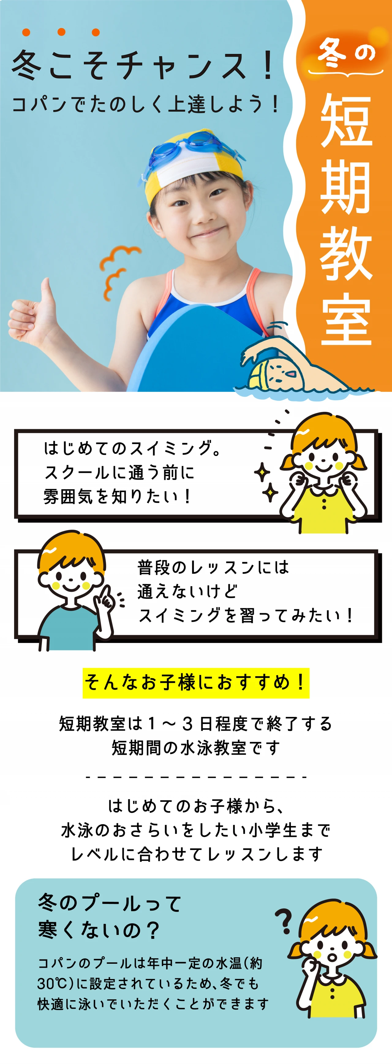プールが初めて・苦手な子もご安心ください。