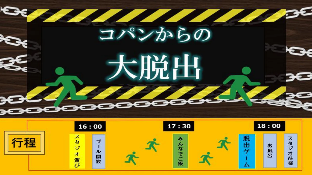 スタジオ、プールなど、館内を使った脱出ゲームをクリアしよう!