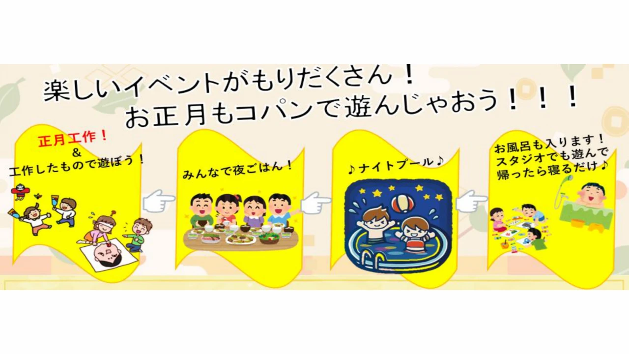 正月工作、プール開放、晩御飯、夕方から夜までイベント盛り沢山!
