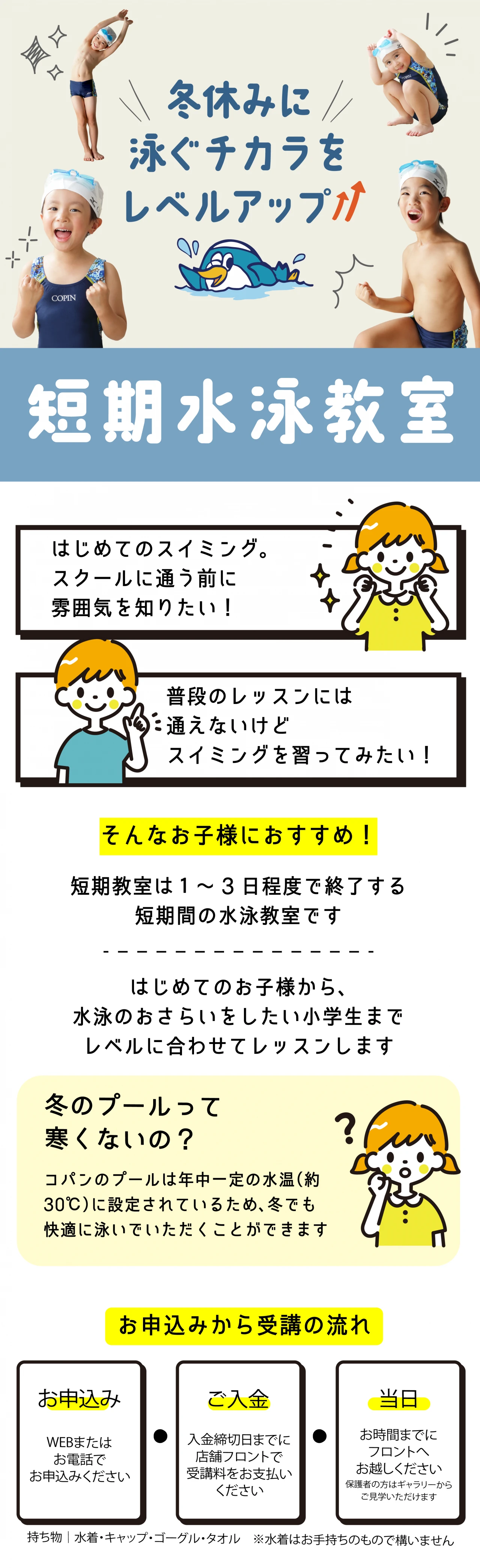 冬休みの数日間で、集中して泳ぎのコツをつかもう!