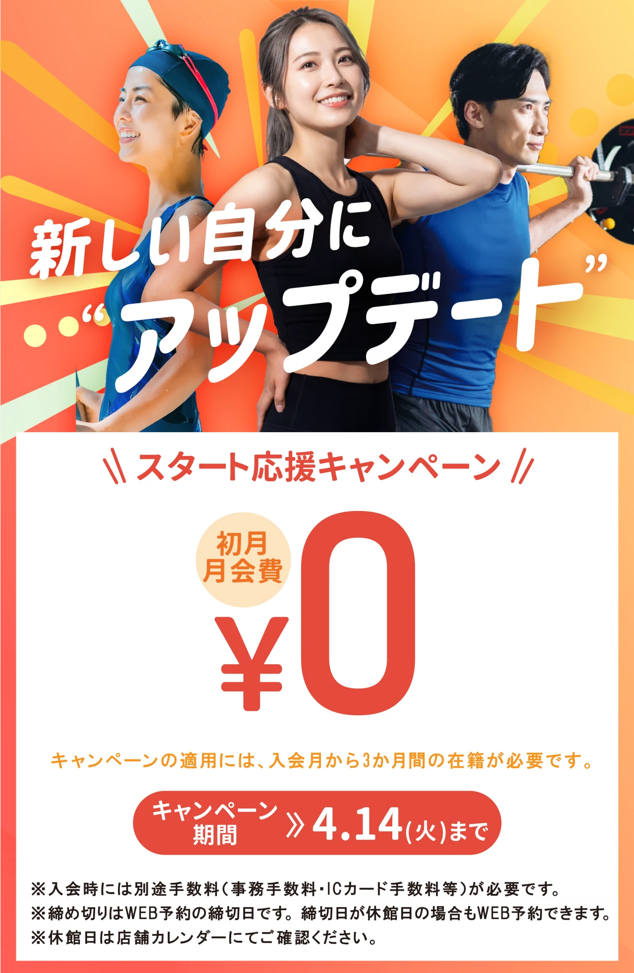 期間中のWEB入会予約で<br><br>キャンペーン価格が適用されます♪<div class="fr-img-space-wrap"><img src="/lsc/upfile/news/0001/9338/19338_d079_l.webp?1774344504" style="width: 652px;" class="fr-fic fr-dib"><p class="fr-img-space-wrap2"><br></p></div>