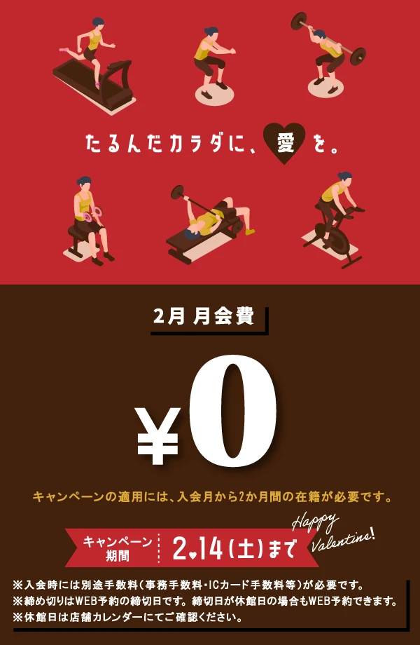 2/14(土)まで!春の入会キャンペーン実施中! 2026.1.27 キャンペーン 春の入会キャンペーン開催中♪ たるんだカラダに、愛を♡。 WEBでお申込み お申込みフォーム 電話で申し込み 052-602-6226 WEBでお申込み お申込みフォーム 電話で申し込み 052-602-6226
