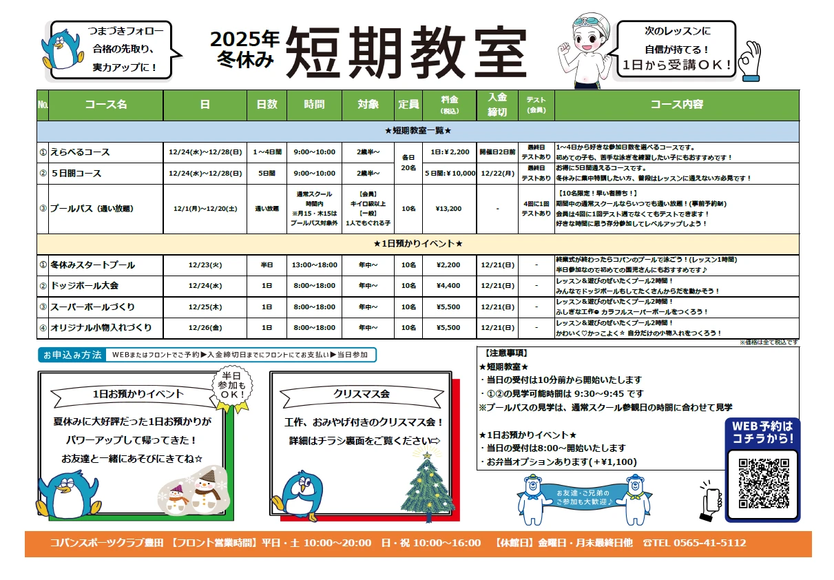 時間:通常スクール時間内 ※月15・木15はプールパス対象外