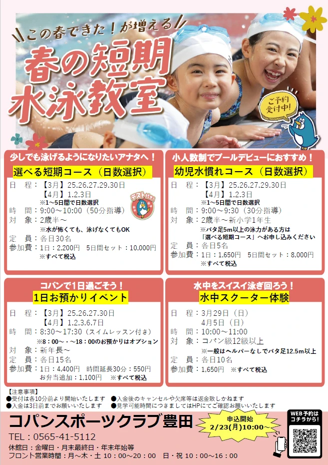 【春休みはコパンでスイミング!】